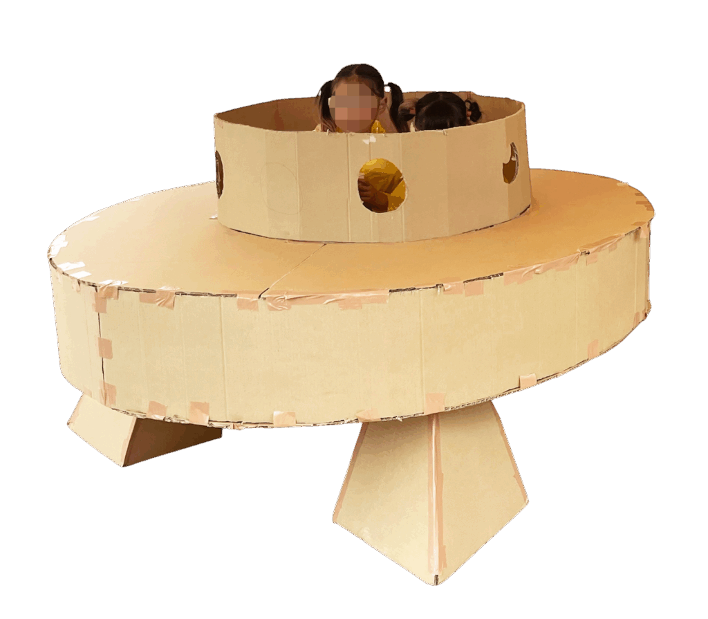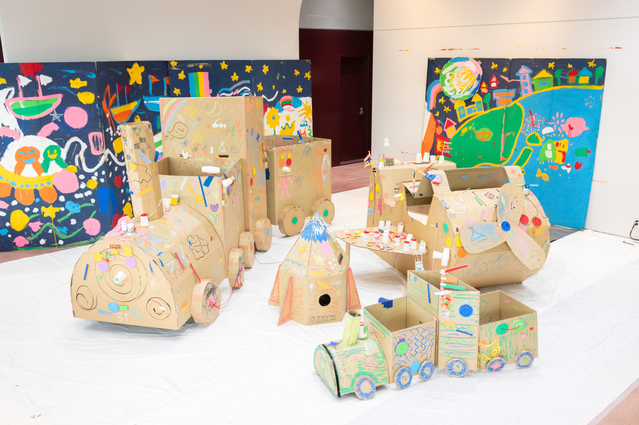 「ワクワクをカタチに」をテーマに、ダンボールや端材を使った